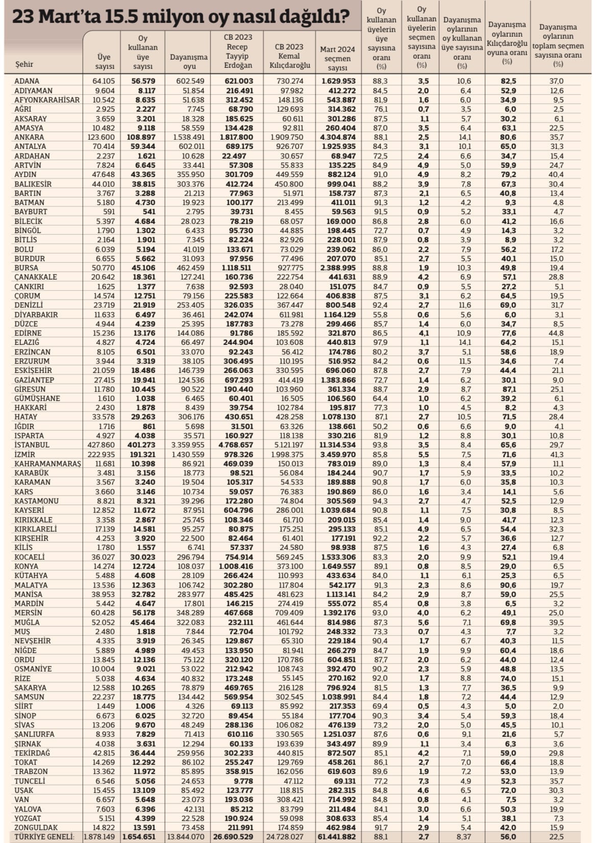 Oksijen Gazetesi yazarı Bekir Ağırdır, İstanbul Büyükşehir Belediye Başkanı İmamoğlu'na verilen oyları değerlendirdiği köşe yazısında oy tablosuna yer verdi.