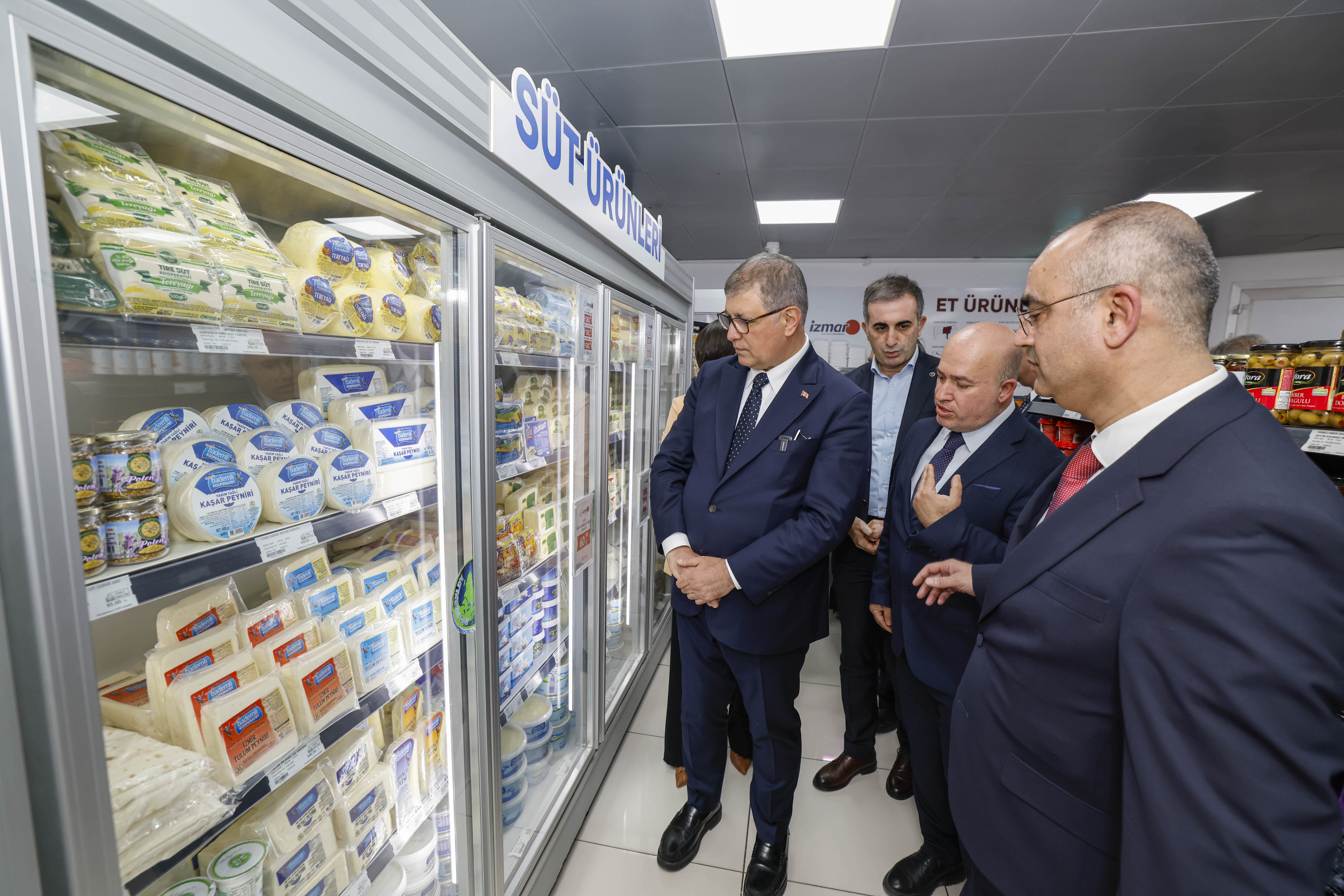İZMAR’larda İzmir Büyükşehir Belediyesi’nin çatısı altında sağlıklı koşullarda üretilen su, ekmek, et ve süt ürünlerinin de uygun fiyatla satıldığını belirten Başkan Tugay, “Kendi kaynaklarımızdan ürettiğimiz suları bu marketlerde piyasanın yarı fiyatına satıyor olacağız. Marketlerimizde İZTARIM’ın Bayındır’daki fabrikasında üretilen İZMAR markalı yoğurt, tereyağı gibi ürünler olacak. Daha sonra diğer şarküteri ürünleri de üretilmeye devam edilecek. Sağlığından, güvenliğinden hiçbir şüphe etmeden ve piyasada satılan eşdeğerlerinden en az yüzde 25 daha uygun fiyatlı olacak şekilde bu ürünleri marketlerimizde bulacaksınız” ifadelerini kullandı.