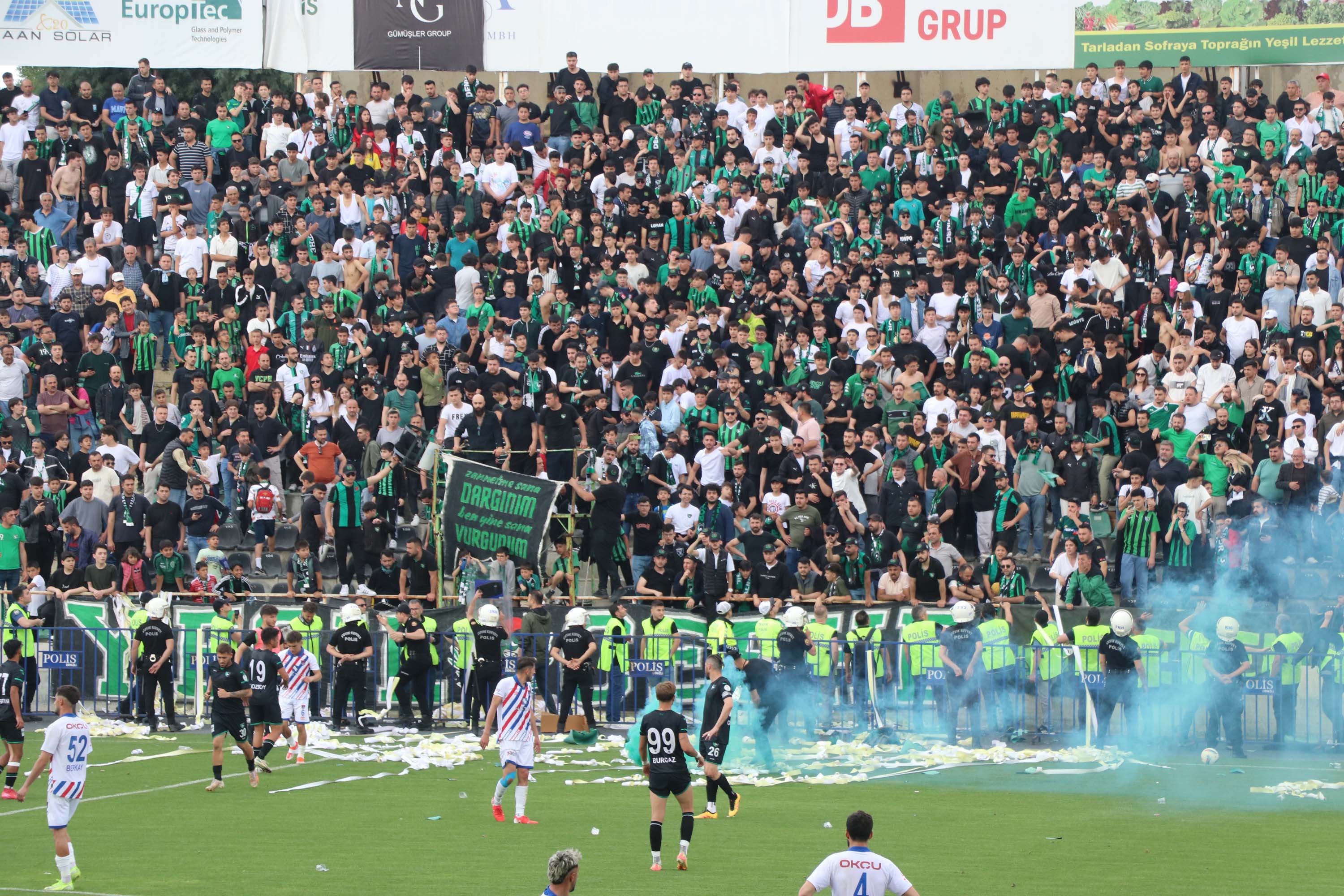 Maçın bitimi ile bir grup taraftar tribün koltuklarını parçaladı. Koltuklar sahaya fırlatılırken, taraftarlar da tribünleri ateşe verdi.