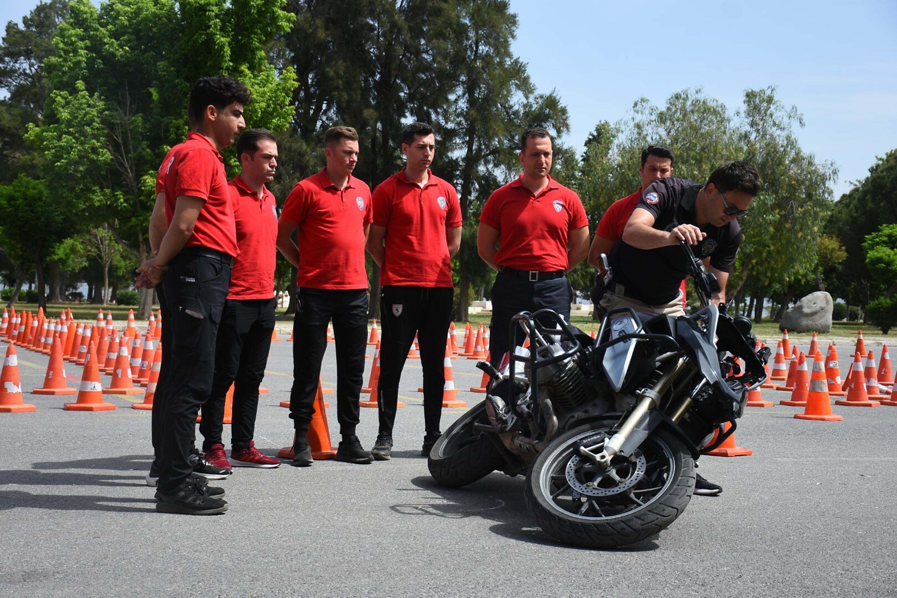 Motosikletli Polis Timleri Büro Amirliği'nin kuruluşundan bu yana eğitmen olarak hizmet veren İbrahim Gençer, "Burası, Asayiş Daire Başkanlığı'nın kurs ile ilgili yaptığı planlama ve Emniyet Genel Müdürlüğü'nün oluruyla Ege Bölgesi'nin kurs merkezi. Kursiyerlerimizi burada 5 haftalık zorlu bir eğitime tabi tutuyoruz. Başarılı olan arkadaşlarımız sertifikalarını aldıktan sonra görevlerine başlıyor. Eğitimlerde motosikletin temel kurallarını, işleyişini, denge unsurlarını ve ileri sürüş tekniklerini öğretiyoruz. Bizler asayiş görevi yaptığımız için arkadaşlarımız son derece seri hareket etmeliler. Bu seriliği yakalamak adına da spor aktivitelerimiz de eğitimlerimiz arasında yer alıyor. Çünkü motosikleti kullanmak fiziki yeterlilik de gerektiriyor. O yüzden bu spor eğitimleri de oldukça önemli" ifadelerini kullandı.