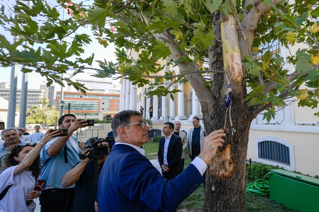 Dikimin ardından açıklama yapan Başkan Tugay, “Tam burada eski bir çınar ağacı vardı. Birkaç gün önce, gövdesindeki bir problem nedeniyle kendiliğinden kırıldı. Biz o ağacın yerinde eksiklik olmasın istedik. Herkesin çok üzüldüğünü gördük. Biz de çok üzüldük. Bunu telafi edelim, onaralım diye bu yetişkin çınar ağacını Ödemiş’ten getirdik. Yine İzmir’in ağacı. Orada saksılanmış bir şekilde bekliyordu. Doğaya, ağaca verdiğimiz önem, şehrin değerlerine verdiğimiz kıymet için buradayız. Hayırlı olsun diyelim. Onarılması gereken her türlü yaramızı onaracağız. Eksik olan her şeyi yerine koyacağız. İzmir’in değerini biz biliyoruz. Herkesin de İzmir’e değer vermesi için üstüne düşeni yapmasını bekliyoruz” ifadelerini kullandı.