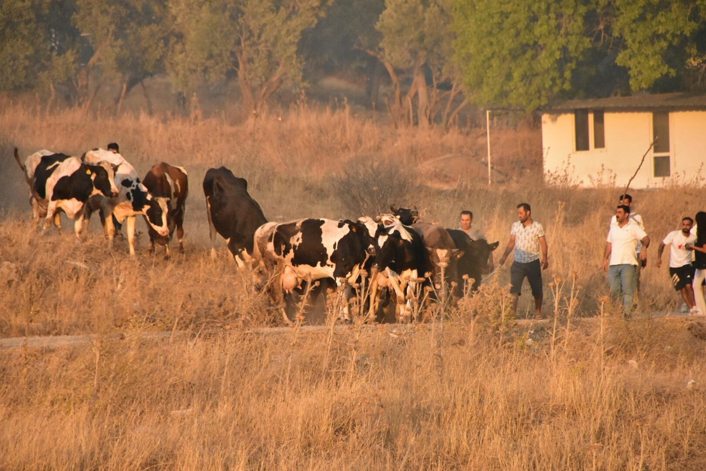 İzmir'in Buca ilçesinde çıkan yangında alevlerin yakındaki hayvan ağıllarına doğru doğru ilerlemesi yürekleri ağza getirdi. Bazı besiciler, hayvanlarını uzaklaştırarak, alevlerden kurtarmaya çalıştı.