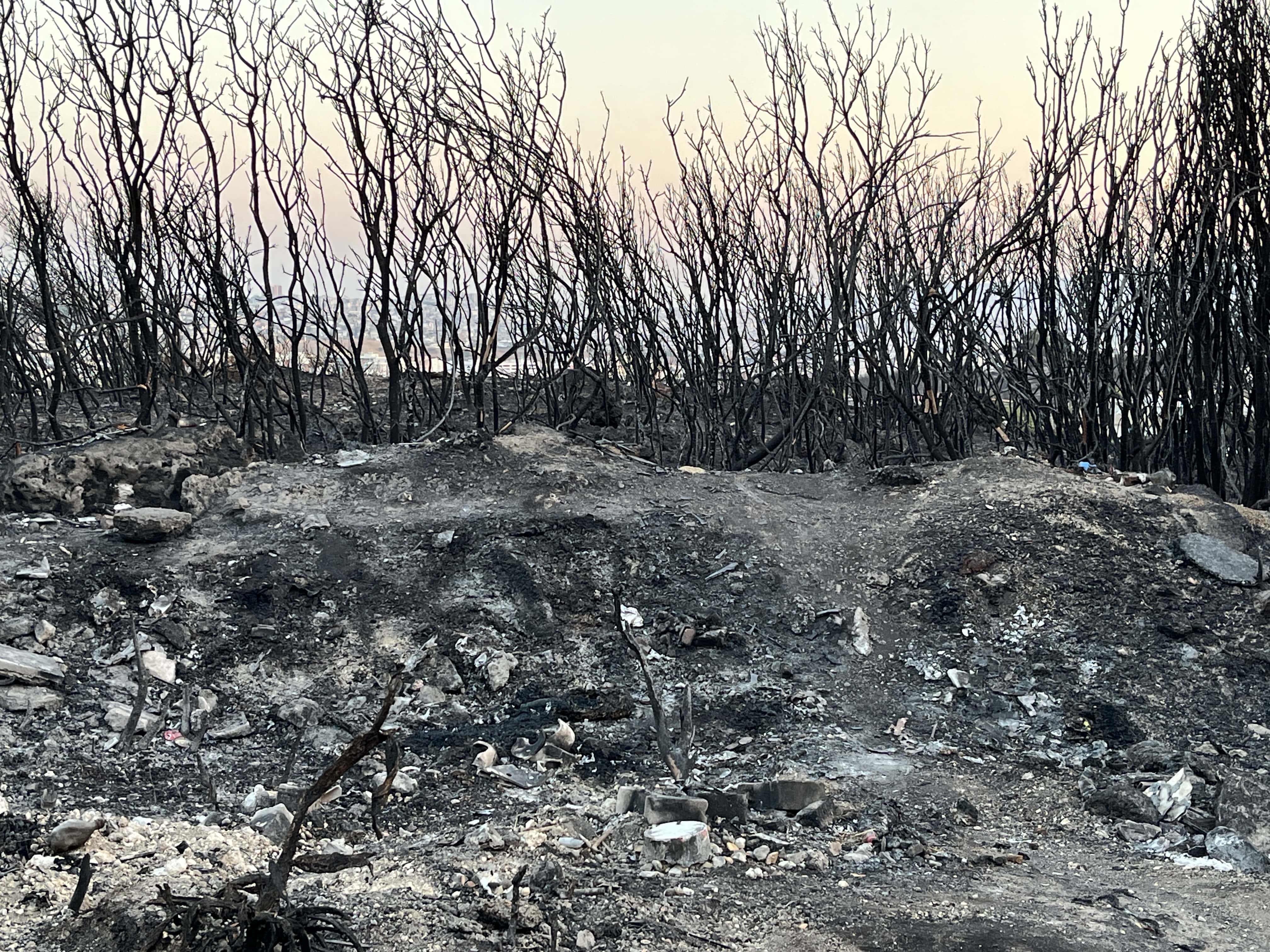Bugün, sabahın ilk ışıklarında havadan müdahale yeniden başladı. Öte yandan, yerleşim yerlerinin çevresinde yanan alanlar, dronla görüntülendi.