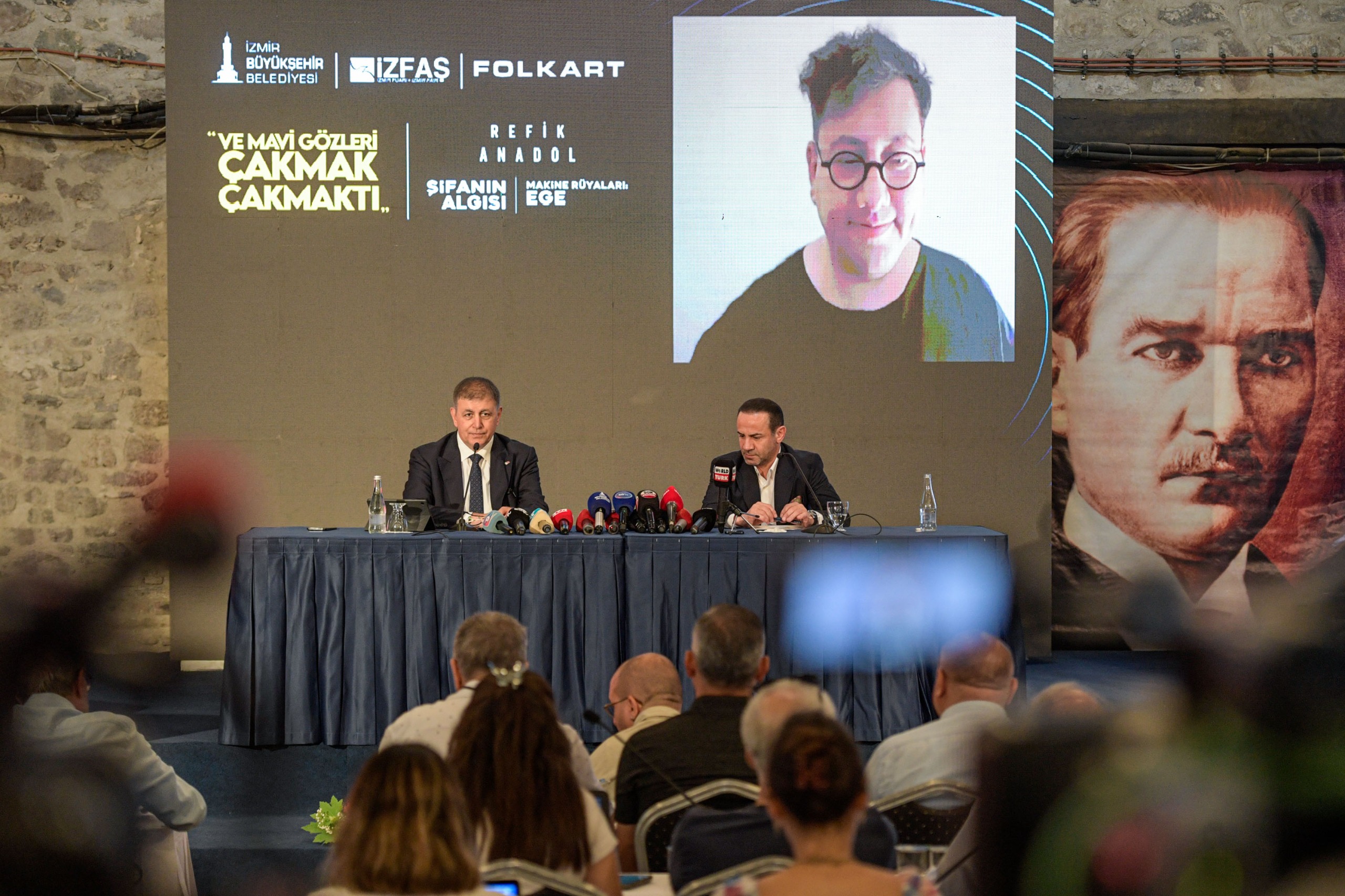 Refik Anadol’un çevrim içi katıldığı, Folkart Yönetim Kurulu Başkanı Mesut Sancak’ın da yer aldığı basın toplantısında konuşan İzmir Büyükşehir Belediye Başkanı Dr. Cemil Tugay, “Her iki sergiyi sizlerin beğenisine sunmak, bizim için onurdur. İzmir için güzelliklere vesile olsun” dedi.