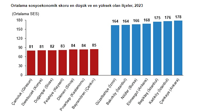 İlçeler ortalama sosyoekonomik seviyeye göre sıralandığında, skoru en yüksek yedi ilçe sırasıyla Çankaya (Ankara), Kadıköy (İstanbul), Beşiktaş (İstanbul), Etimesgut (Ankara), Nilüfer (Bursa), Bakırköy (İstanbul) ve Güzelbahçe (İzmir) ilçeleri oldu.
