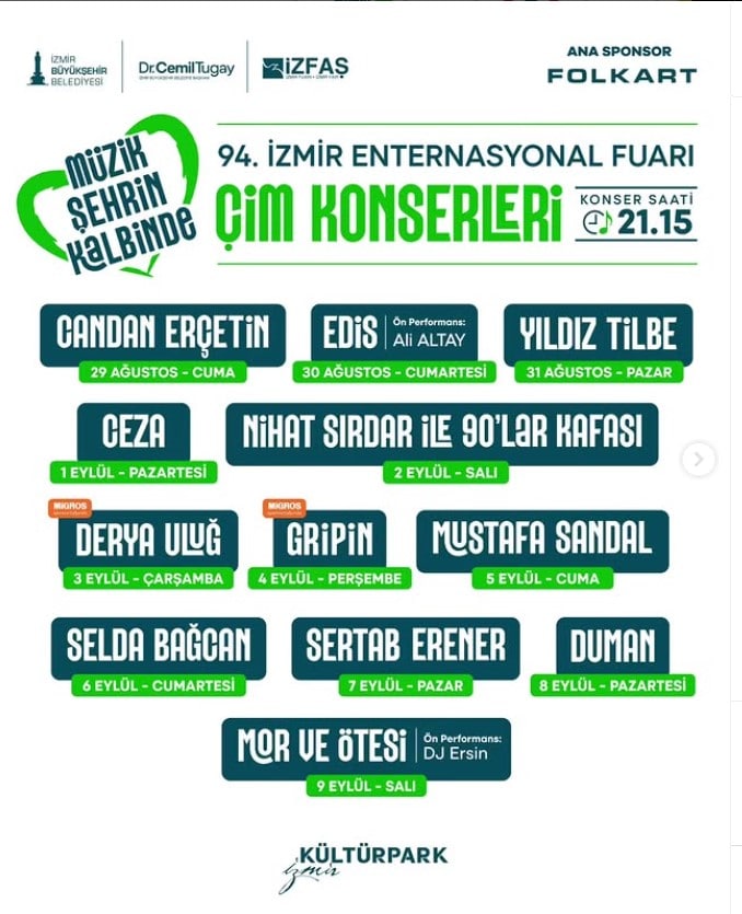 94. İzmir Enternasyonal Fuarı'nda kimler konser verecek? İşte ücretsiz çim konserleri...
