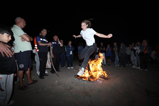 Gökyüzünün uçurtmalarla kaplandığı şenliğin Hıdırellez’e denk gelmesi nedeniyle Hıdırellez coşkusu da şenlik alanın da yaşandı. Baharın gelişini simgeleyen Hıdırellez’in simgesi ateş üzerinde atlama ritüeli de alanda gerçekleşti.