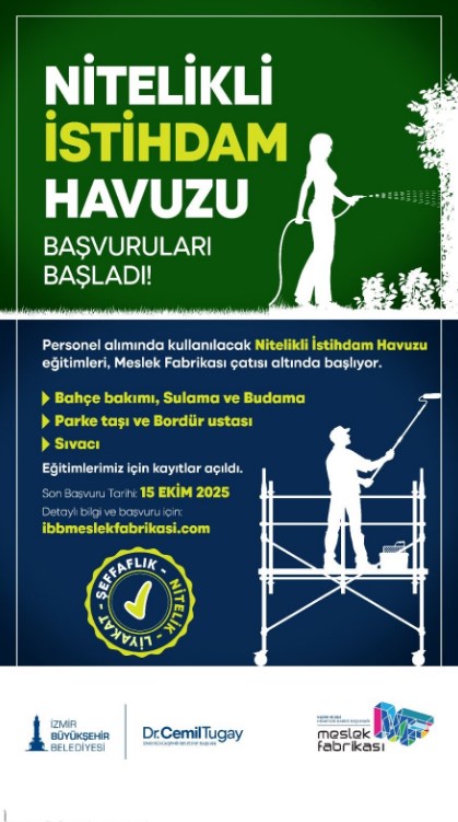 Hem Nitelikli İstihdam Havuzu projesi hem de eğitimler hakkında bilgi veren Meslek Fabrikası Şube Müdürü Zeki Kapı, “Meslek Fabrikası Şube Müdürlüğü olarak kentin ekonomik kalkınmasını güçlendirmek adına nitelikli insan kaynağı yetiştirmek üzere ücretsiz kurslar açıyoruz. Kursların sonucunda uluslararası geçerliliği olan Milli Eğitim Bakanlığı onaylı sertifika veriyoruz. Başkanımız Dr. Cemil Tugay’ın şeffaflık, liyakat ve fırsat eşitliği ilkelerini önceliklendirdiği yeni bir istihdam politikasına geçiş yapıyoruz. Bu kapsamda özellikle teknik personel önce eğitim alıp ardından İzmir Büyükşehir Belediyesi bünyesinde oluşturulan bir havuza dahil edilecek. Eğitimlerini tamamlayan tüm nitelikli kişiler, İzmir Büyükşehir Belediyesi’nin personel ihtiyacı olduğunda işe alınmak üzere havuzda bulunan potansiyel birer belediye personeli haline gelmiş olacak” dedi. Kapı, kursların hangi tarih ve saat aralığında olacağının https://www.ibbmeslekfabrikasi.com/ adresi üzerinden paylaşılacağını sözlerine ekledi. İstihdam