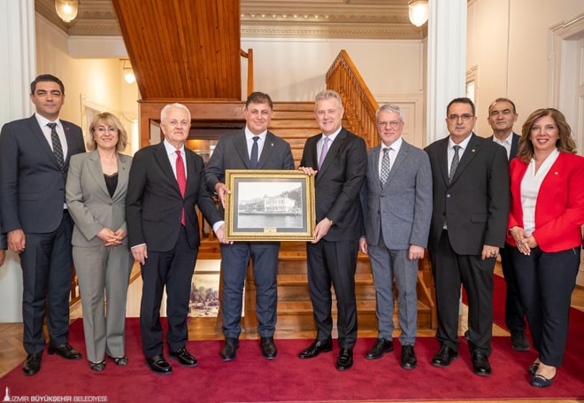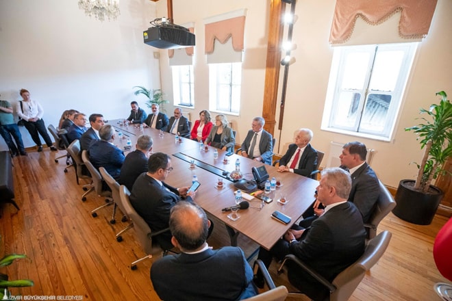 İZTO Başkanı Mahmut Özgener ise “Bu dönem sizin için aslında zor ve yoğun bir dönem. Bizleri kabul ettiğiniz için çok teşekkür ederiz. Bizlerle iletişimi hep üst düzey seviyede tuttunuz. Seçim sonrası da iş birlikleri ve iletişimin devam edeceği konusunda bizlere fikrinizi çok net bir şekilde ifade ettiniz. İzmir Büyükşehir Belediyesi şehrin en önemli kurumu. Biz de seçim sonrası sizi ziyaret etmek istedik. Bizlerden beklentilerinizi duymak istedik. Kurum olarak da kişiler olarak da iş birliğini önemseyen, iş birliğinden büyük güçler doğacağına inanan insanlarız. Sizin de o yöndeki düşüncelerinizi biliyoruz” dedi.