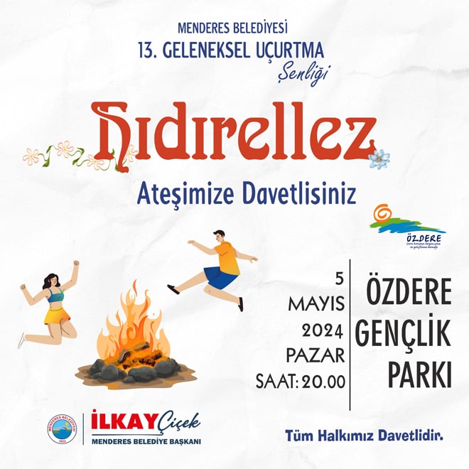 Her sene Menderes Belediyesi tarafından Özdere Çevre Koruma Dayanışma ve Geliştirme Derneği’nin katkılarıyla düzenlenen Menderes Belediyesi Geleneksel Uçurtma şenliği bu yıl 13. kez gerçekleşecek. Özdere Gençlik Parkı’nda 5 Mayıs Pazar günü düzenlenecek etkinlikte Hıdırellez coşkusu da yaşanacak.
