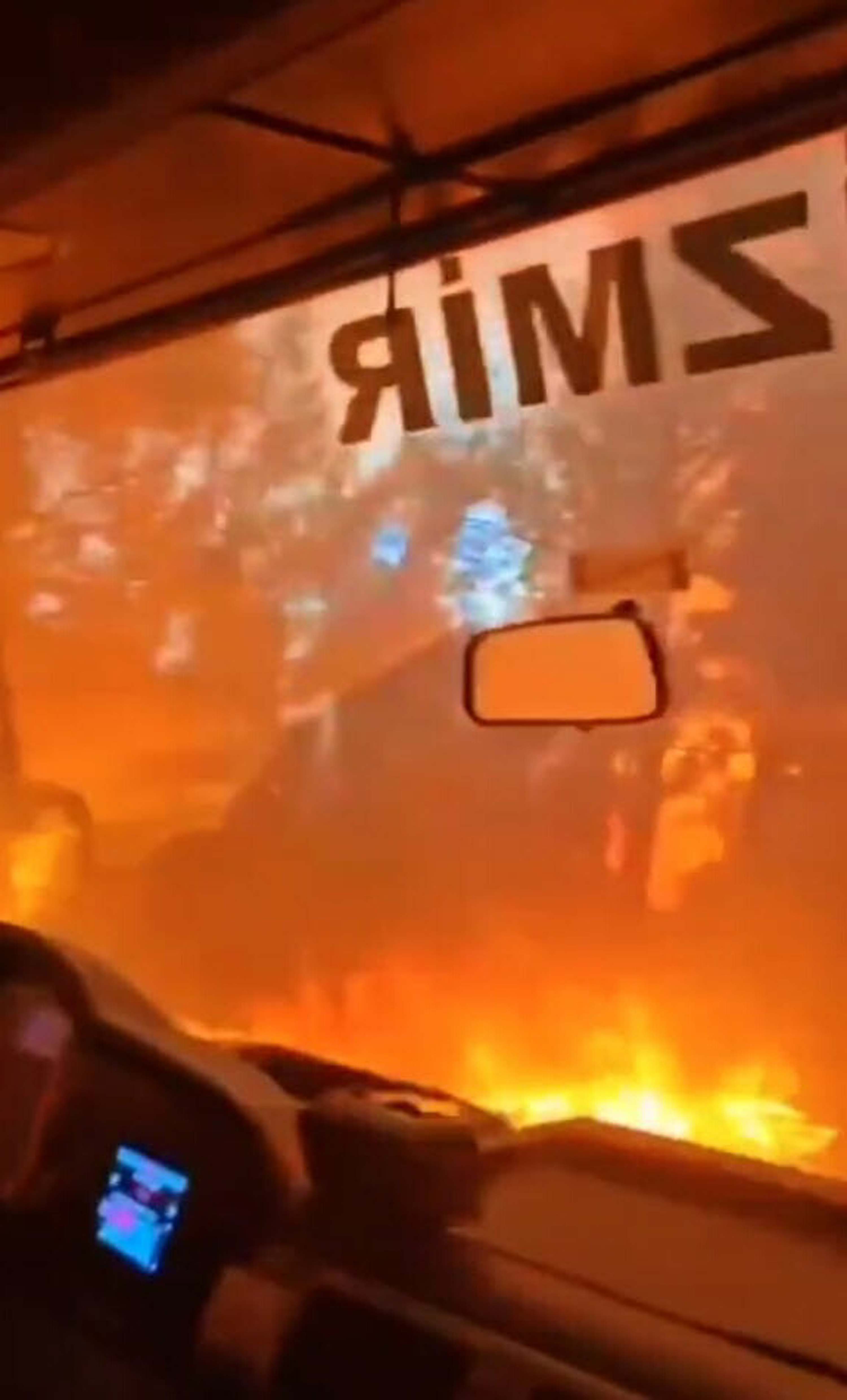 Yangına müdahale eden ekiplerin alevler arasında kaldıkları anlar, cep telefonuyla görüntülendi. Görüntülerde büyük özveriyle çalışan orman işçilerinin, arazöz içinde yoğun alevlerin arasında kaldığı ve güçlükle kurtuldukları anlar yer aldı. Ekiplerin yaşadığı panik de görüntülerde duyuldu. Alevlerin arasında kalan itfaiyecilerden birinin "Cehennem oldu burası" dediği, bir diğerinin ise "Camı kapat" diye bağırdığı ve arkadaşlarını "Korkmayın" diyerek sakinleştirmeye çalıştığı duyuluyor.