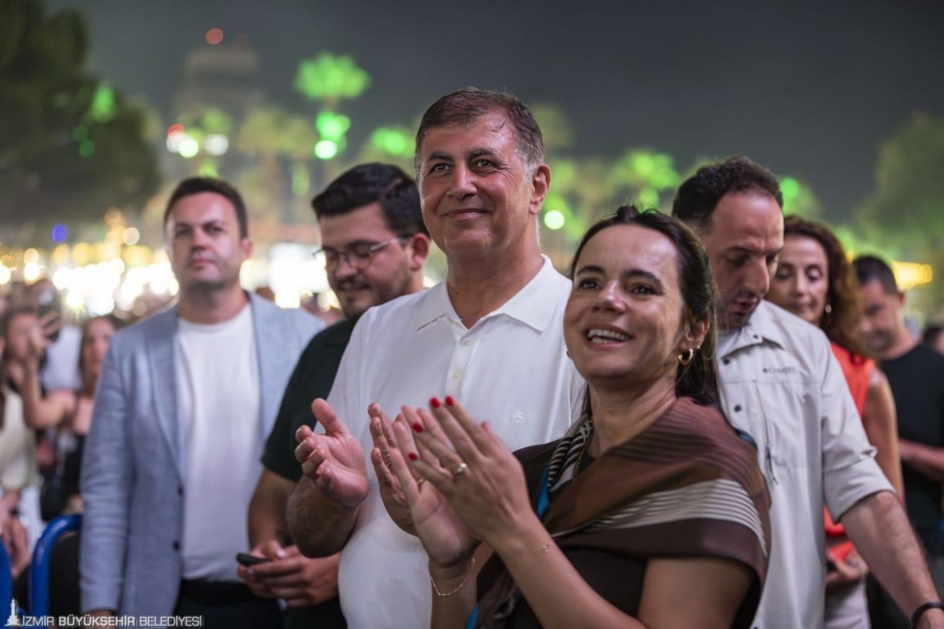 İzmir Büyükşehir Belediye Başkanı Dr. Cemil Tugay, eşi Öznur Tugay ile 94’üncü İEF kapsamında, çim konserlerinde sahne alan ünlü sanatçı Yıldız Tilbe’yi dinledi. Binlerce İzmirlinin akın ettiği fuarda konsere de büyük ilgi vardı.