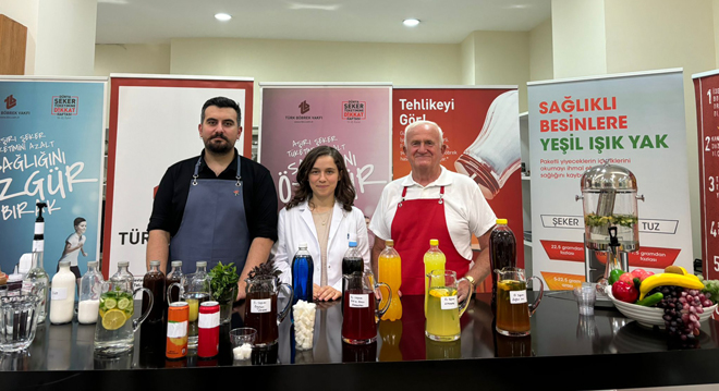 Aşırı sıcaklarda artan şeker tüketimi birçok hastalığa davetiye çıkarıyor. Türk Böbrek Vakfı, halkı aşırı şekerli içeceklerin yol açacağı hastalıklara karşı uyarmak ve sağlıklı içecekler yapmak için bir etkinlik düzenledi. Düzenlenen etkinlikte su tüketimi konusunda vatandaşlar uyarıldı, evde yapılabilecek sağlıklı içeceklerin tarifi paylaşıldı. Türk Böbrek Vakfı Başkanı Timur Erk'in ev sahipliğinde İstanbul'da düzenlenen etkinlikte, TBV Diyetisyeni Gökçen Efe Aydın, evde yapılabilecek, sağlıklı serinletici içecek tariflerini uygulamalı olarak anlatılırken, İstanbul Tıp Fakültesi İç Hastalıkları Anabilim Dalı Endokrin ve Metabolizma Bilim Dalı'ndan Uz. Dr. Hümeyra Rekalı Şahin ise, aşırı şekerli içeceklerin sağlık üzerindeki olumsuz etkilerini anlattı.