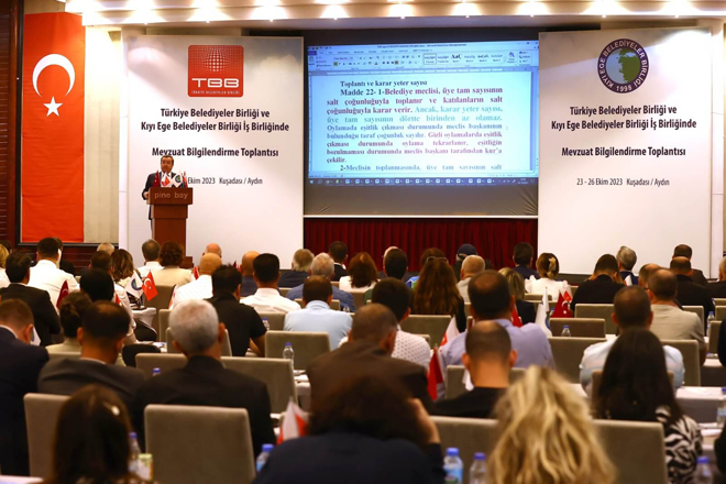 Türkiye Belediyeler Birliği ve Kıyı Ege Belediyeler Birliği’nin düzenlediği Yerel Yönetimler Mevzuatı Bilgilendirme Toplantısı Kuşadası’nda başladı. İki gün sürecek toplantının açılışına Konak Belediye Başkanı da olan Kıyı Ege Belediyeler Birliği Başkanı Abdül Batur, ev sahibi Kuşadası Belediye Başkanı Ömer Günel, Narlıdere Belediye Başkanı Ali Engin, Edremit Belediye Başkanı Selman Hasan Arslan, Kemalpaşa Belediye Başkanı Rıdvan Kayalı, Daskırı Belediye Başkanı İsmail Taylan, Kılıçarslan Belediye Başkanı Halil Çelebi, Fethiye Belediye Başkanı Alim Karaca, Şuhut Belediye Başkanı Recep Bozkurt, Mudurnu Belediye Başkanı Necdet Türker, Bozkurt Belediye Başkanı Birsen Çelik, Mollaköy Belediye Başkanı Gökhan Eren, Lalapaşa Belediyesi Başkanı İsmail Arslan, Ayvacık Belediye Başkanı Mesut Bayram, Torbalı Belediye Başkanı Mithat Tekin, Terme Belediye Başkanı Ali Kılıç, Gerze Belediye Başkanı Cevat Şensoy, Menderes Belediye Başkanı Erkan Özkan ile belediye meclis üyeleri ve belediyelerde görevli bürokratlar katıldı.