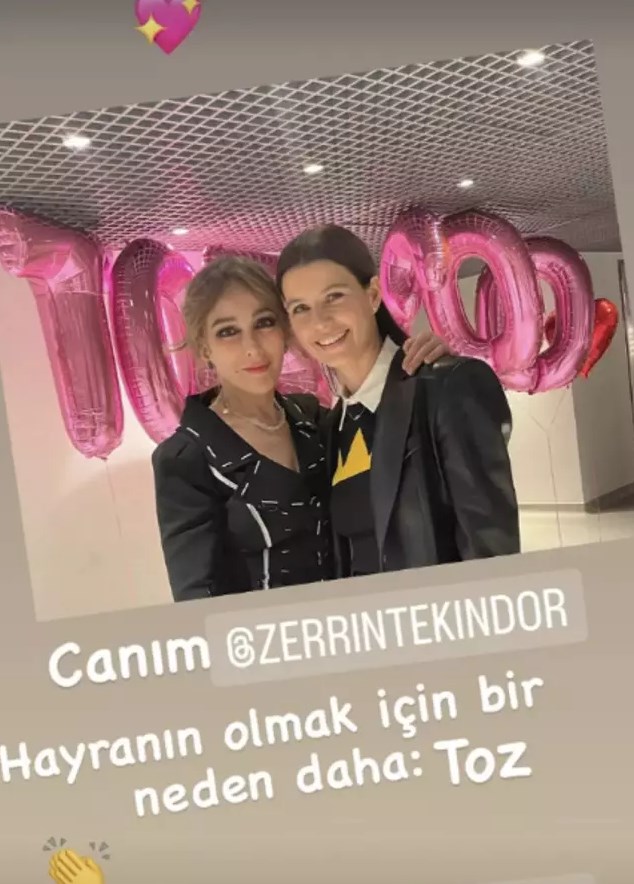 Zerrin Tekindor'un tek kişilik oyunu Toz'a giden Beren Saat meslektaşıyla fotoğraf paylaşmayı ihmal etmedi. Beren Saat Zerrin Tekindor ile pozuna 'Hayranın olmak için bir neden daha' yazdı.
