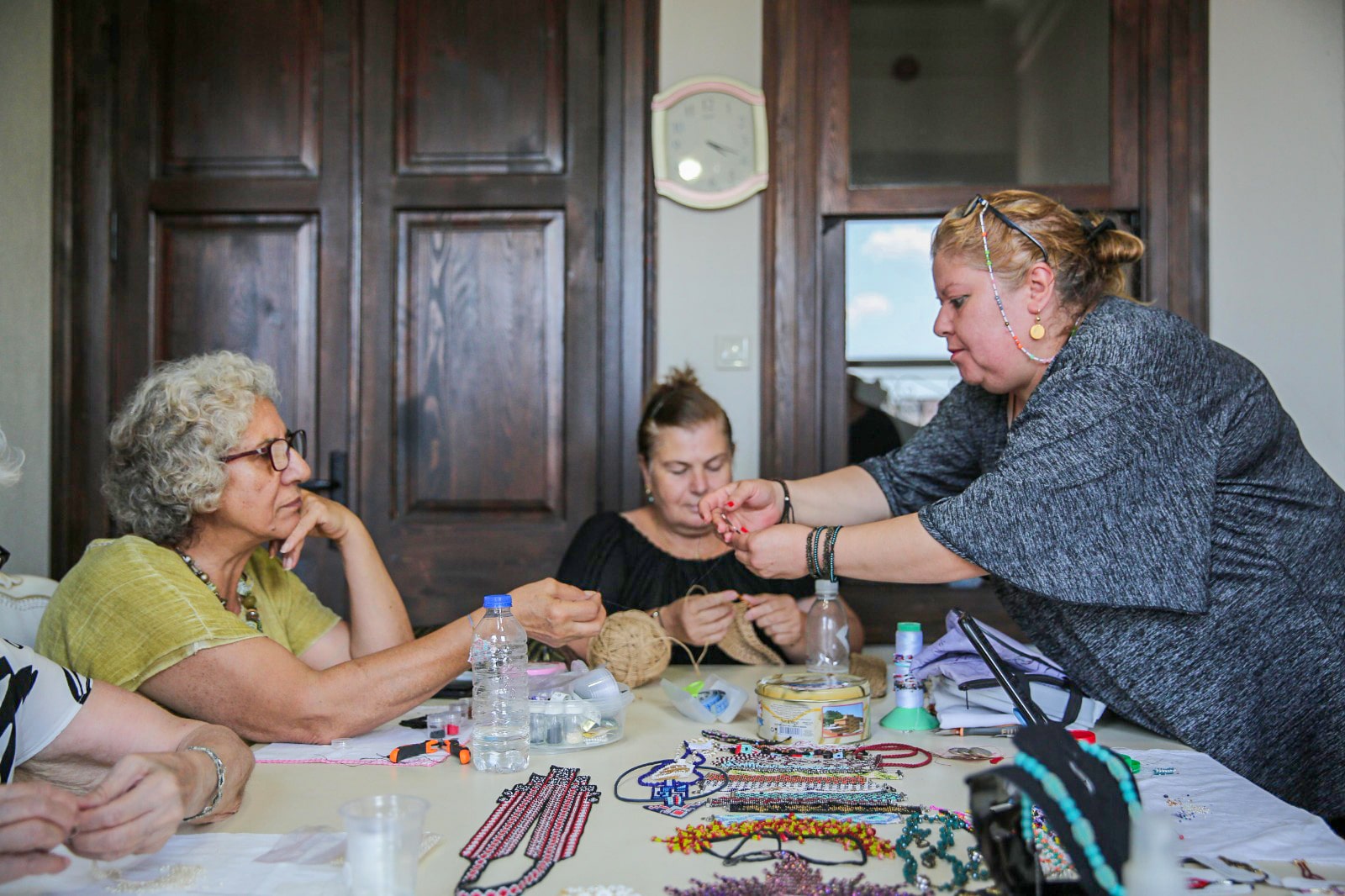 Konak Belediyesi'nin farklı mahallelerde yer alan semt merkezlerinde Konak Halk Eğitim Merkezi iş birliğiyle verilen hobi ve el sanatları kursları, her yaştan vatandaşa verdiği eğitimlerle büyük ilgi görürken birçok hikayeye de ev sahipliği yapıyor. Hobi ve el sanatları kurslarının yüzlerce kursiyeri arasında yer alan Güler Kurtul ve Hatice Malay, yıllardır katıldıkları kurslardan aldıkları sertifikalar sayesinde usta öğretici oldular. Kursiyer olarak başladıkları Prof. Dr. Nermin Abadan Unat Semt Evi'nde el sanatları alanında usta öğretici olarak eğitim veren Kurtul ve Malay, kendi hikayelerini yeniden yazmanın yanı sıra azimleriyle de herkese örnek oldu. Arkadaşlarının başarısından cesaret bulan ve katıldığı kursların ardından önce kalfalık ardından da usta öğretici belgesini alan 60 yaşındaki Leyla Birgül Emekli ise eğitim vermek için gün sayıyor.