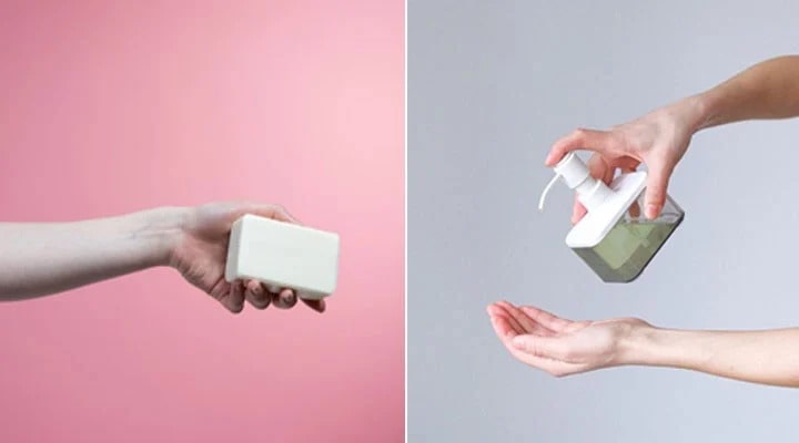 Sıvı sabunlar ise kapalı bir kutuda olduğundan ve kullanılmayan kısımlarına temas olmadığı için daha hijyeniktir. Sıvı sabun katı sabuna göre düşük pH oranına sahiptir.