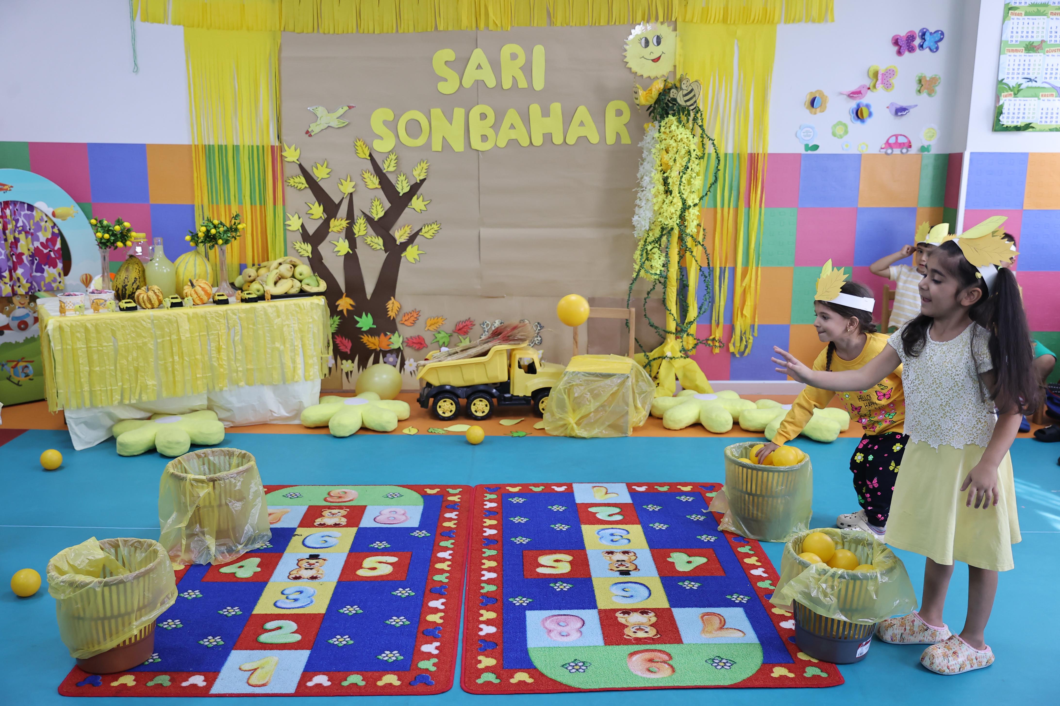 Etkinlik kapsamında sarı renkli kıyafetler giyen öğretmen ve minikler, aynı renkte meyveler, içecekler, oyuncaklar ve aksesuarlar eşliğinde şarkılar söyleyip eğlenceli oyunlar oynadı. Sarı renkli poşetler içinde çuval yarışı, hedefe sarı renkli top atma, balon taşıma gibi keyifli oyunlar oynayan minikler, yine sarı renkli meyvelerden muz, elma, armut, kavun yiyerek limonata içti. Sınıfı da sarı renkli oyuncak ve objelerle süsleyen öğretmenler, mevsimi görsel olarak pekiştirmenin yanı sıra şarkılarla da işitsel olarak pekiştirmeye çalıştı. Akranlarıyla birlikte eğlenerek öğrenmenin ayrıcalığını yaşayan minikler, keyifli etkinliklerle unutulmaz bir gün yaşadı.