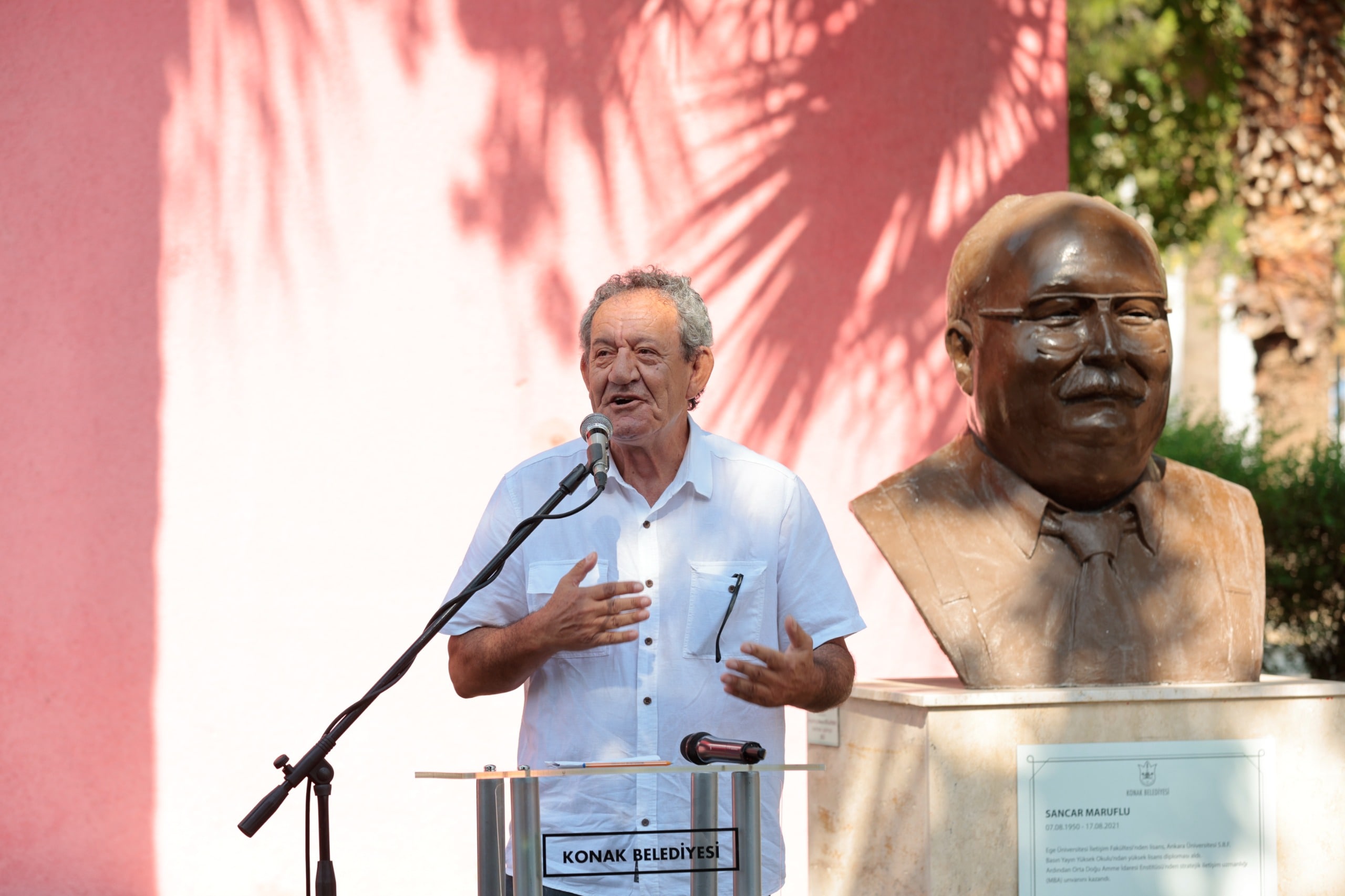 Maruflu’nun yakın arkadaşlarından Hüsnü Oral, “Sancar Maruflu’nun dördüncü ölüm yıldönümünde buraya icabet ederek belediye başkanlarını temsil eden Konak Belediye Başkanımıza sonsuz sevgi ve saygılarımı sunuyorum. Her insanda olması gereken bir şey vardır, ahde vefa. Sancar Maruflu 65 yıllık arkadaşımdı. Kesinlikle egoist değildi. Kendine değil etrafına dikkat eder, onların mutluluğu için çalışırdı” şeklinde konuştu.