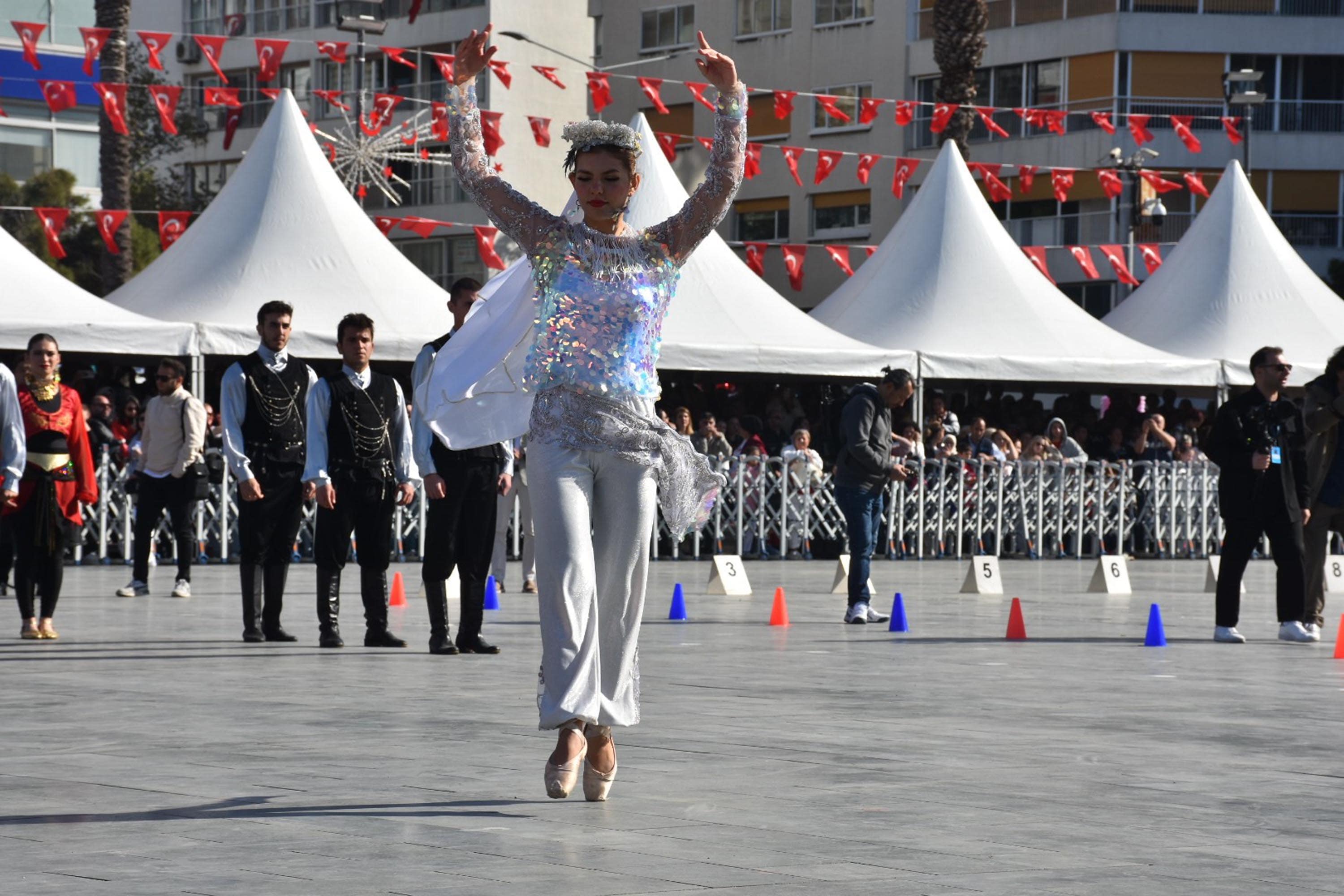 İzmir Valiliği himayesindeki programın devamında; günün anlam ve önemi anlatan şiir okundu, çeşitli yaş gruplarından çocuk ve gençler, zeybek ve vals gibi dans gösterileri sundu. Programda, çeşitli spor yarışmalarında dereceye giren öğrencilere protokol üyelerince ödülleri verildi. Meydandaki program, geçit töreniyle son buldu.