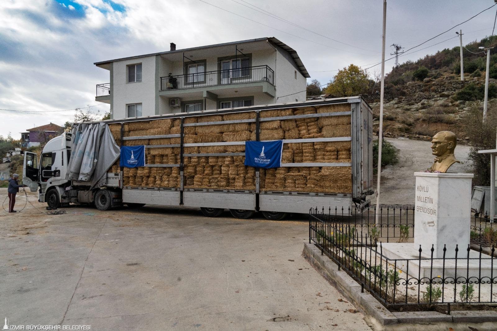 Sancaklı’daki dağıtımda çalışmalar hakkında bilgi veren İzmir Büyükşehir Belediyesi Tarımsal Hizmetler Dairesi Başkanlığı’nda görevli Ziraat Mühendisi Aylin Işık, “Ağustos ayında İzmir olarak büyük bir afet yaşadık. Biz bu alanda bir tutam otu kalmayan, meraları yanan köyümüze destekte bulunuyoruz. Başkanımız Dr. Cemil Tugay’ın talimatıyla bu desteklere de devam edeceğiz. Yangının ardından üç ay geçti, dördüncü aya geliyoruz. Bugün kaba yem getirdik. Yeniden otlar yeşerinceye, üreticimiz belini doğrultana kadar buradayız” dedi.