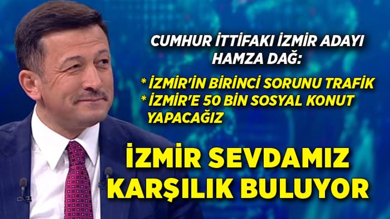 Hamza Dağ, "Şu an İzmir milletvekili değilim üç dönem kuralından dolayı. 4 dönem İzmir milletvekilliği yaptım. AK Parti Genel Başkan yardımcılığı devam ediyor. İzmir'de yıllardır siyaset yapıyoruz. Gençlik kollarından beri oradayız. Üniversiteye İzmir'e geldim. Hayatımın büyük bir bölümü İzmir'de geçti. Öğrencilik, iş, siyasi hayatım İzmir'in sokaklarında geçti. İzmir'in 33 ilçesini, mahallelerini iyi bilirim. Her mahallede izimiz vardır. O mahalleden biri milletvekili olduğumuz döneminde bize talebini iletmiştir, biz de karınca kaderince ilgilenmişizdir. Şehrimizin statlarının yapılmasında ilgilenmiştir. Şehir hastanesinde izimiz vardır. İzmir'in her bölgesinde izimizin olduğunu düşünüyorum. Her bölgesinde bir hikâyemiz var. Biz teşkilatın, belli kültürün içinden geliyoruz. Karar ne şekilde tezahür ederse ona saygı göstereceğimizi söyledik. Şimdi İzmir Büyükşehir Belediye Başkan adayıyım. İzmir sevdamızın karşılık bulduğunu görüyorum. Seçim sonucunu etkileyecek olan gri alan dediğimiz seçmende karşılık bulduğunu görüyorum. Yıllardır İzmir'de siyaset yapıyor olmak, İzmir'deki birçok seçmenle doğrudan veya dolaylı temas etmiş olmak bir avantaj." dedi.
