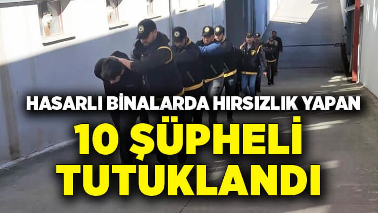 Ekipler, boşaltılan evlere girip, hırsızlık yapan ve deprem bölgesi için toplanan malzemeleri çalan 10 şüpheliyi tespit etti. Şüpheliler, adreslerine düzenlenen operasyonla yakalandı; aramalarda 12 paket bebek bezi, 13 konserve yiyecek, 13 diş macunu ve fırçası, çok sayıda tıraş bıçağı ve köpüğü, pil ile inşaat malzemesi ele geçirildi. Emniyetteki işlemlerinin ardından adliyeye sevk edilen 10 şüpheli, çıkarıldığı hakimlikçe tutuklandı.