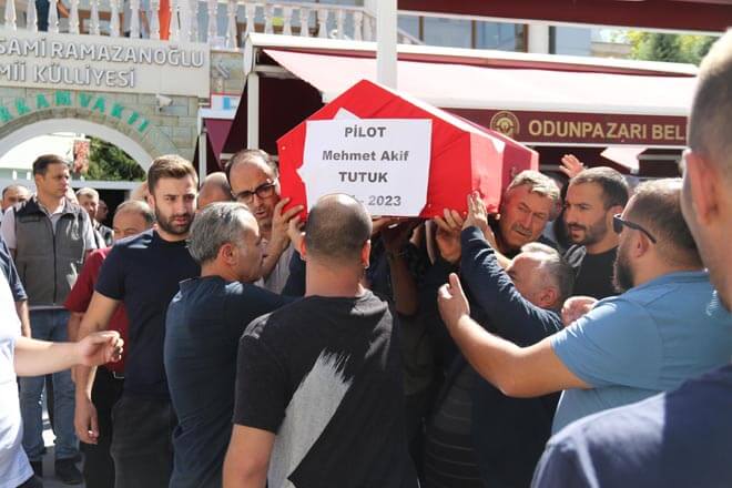 İzmir’in Menderes ilçesinde orman yangınında koordinatör pilot olarak yer aldığı helikopterin Tahtalı Barajı'na düşmesi sonucu hayatını kaybeden Mehmet Akif Tutuk’un cenazesi, dün Orman Genel Müdürlüğü helikopteriyle memleketi Eskişehir’de getirildi. Pilot Tutuk için bugün Tepebaşı ilçesi Vişnelik Mahallesi’ndeki Mahmut Sami Ramazanoğlu Camisi'nde öğle namazının ardından cenaze namazı kılındı. Namaza, Eskişehir Valisi Hüseyin Aksoy, Orman Genel Müdürü Bekir Karacabey, pilot Mehmet Akif Tutuk’un babası Ahmet, annesi Ayşe, kardeşi Emre, kız kardeşi Betül Tutuk ile yakınları katıldı. Baba Ahmet Tutuk, cami bahçesinde taziyeleri kabul etti. Betül Tutuk ise pilot montuyla geldiği camide Türk bayrağına sarılı kardeşinin cenazesine sarılarak ‘Gitti kardeşim’ diyerek gözyaşı döktü.