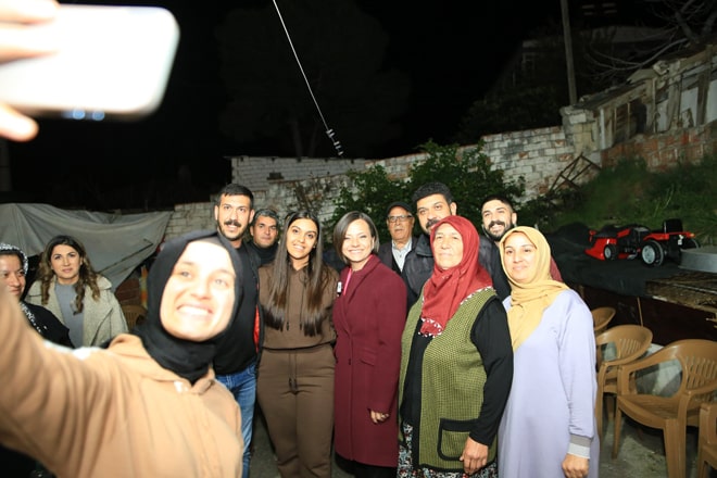 Vatandaşlarla buluşmasının ardından Kınay, Arap Hasan Mahallesi’nde vatandaşlarla bir araya geldi. Seçime kısa bir süre kaldığını belirten Kınay, “1 hafta sonra Karabağlar’da bir değişimle beraber bizler aslında hak ettiğimiz, daha iyisini istediğimiz, 15 yıldır belediyemizin yaptığı çalışmaları daha iyiye götüreceğimiz ama kadınlar, gençler ve çocuklar için daha çok çalışacağımız, daha mutlu olacağımız bir 5 yılı beraber geçirmek istiyoruz. Çünkü bu ülkede o kadar yorulduk ki artık 22 yıldır iktidardakilerin her gün elimizden aldıklarından, cebimizden aldıklarından, soframızdan aldıklarından, umudumuzdan, mutluluğumuzdan, huzurumuzdan aldıklarından, kadınlar, gençler ve çocuklardan aldıklarından o kadar yorulduk ki, bizim pazar günü sandığa gidip o seçimde çok büyük bir ders vermemiz gerekiyor” dedi.