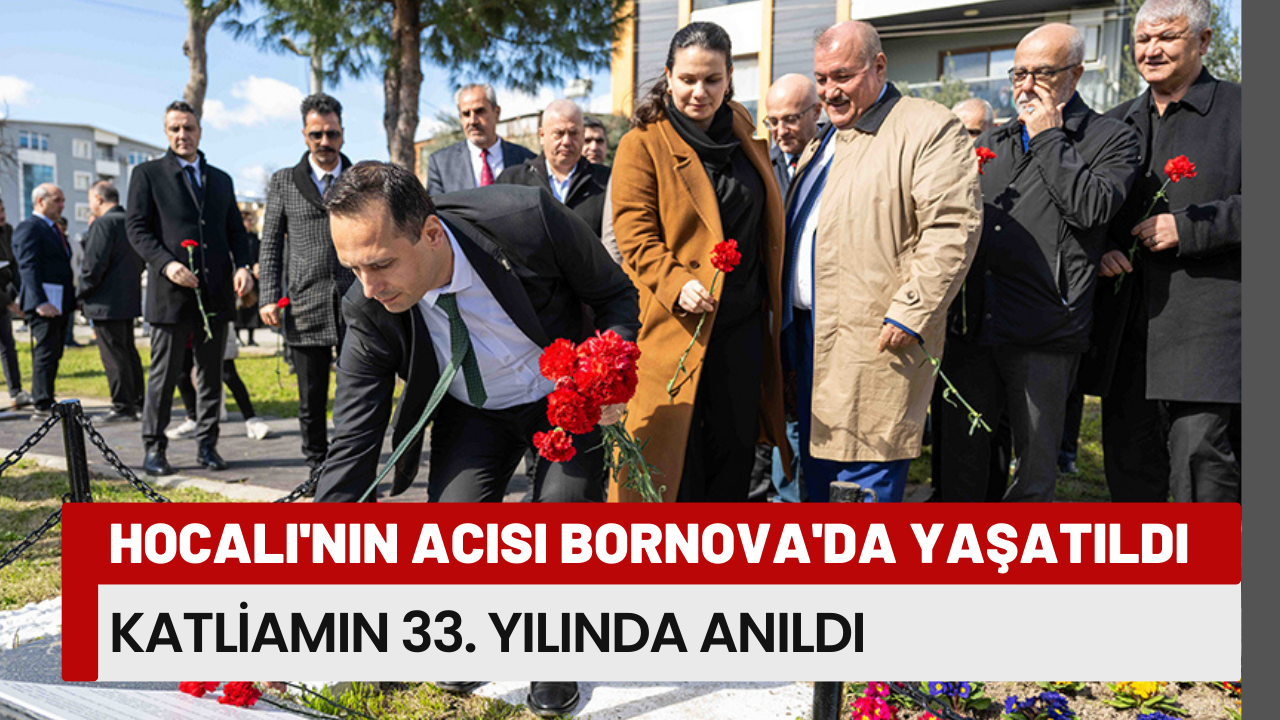 Azerbaycan'ın Hocalı kasabasında Ermenistan'a bağlı kuvvetler tarafından katledilen 613 Azerbaycanlı sivil, katliamın 33. yılında Bornova Belediyesi tarafından düzenlenen iki ayrı törenle anıldı. Program, gündüz saatlerinde Karacaoğlan Mahallesi'ndeki Azerbaycan Dostluk Parkı'nda başladı, akşam ise Kızılay Mahallesi'nde devam etti. Katliamı dünyaya anlatan fotoğraflardan oluşan sergi büyük ilgi görürken, akşam düzenlenen anmada hayatını kaybeden çocuklar için gökyüzüne balonlar bırakıldı.