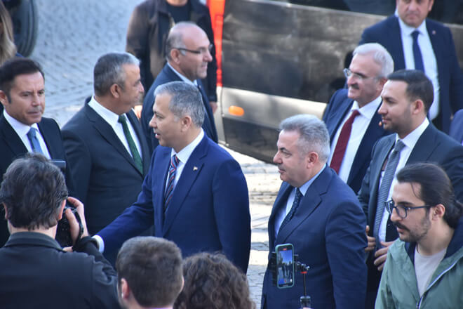 Bir dizi ziyaret gerçekleştirmek amacıyla İzmir'e gelen İçişleri Bakanı Ali Yerlikaya, İzmir Valisi Süleyman Elban tarafından havalimanında karşılandı. Bakan Yerlikaya, ardından Konak Meydanı'nda bulunan valilik binasına geçerek, ziyarette bulundu. Valilik Şeref Defteri'ni imzalayan Bakan Yerlikaya'nın İzmir Valisi Süleyman Elban ile görüşmesi basına kapalı olarak gerçekleşti. Bakan Yerlikaya, program kapsamında saat 14.30'da 'Türkiye'nin Huzuru' toplantısına katılacak.