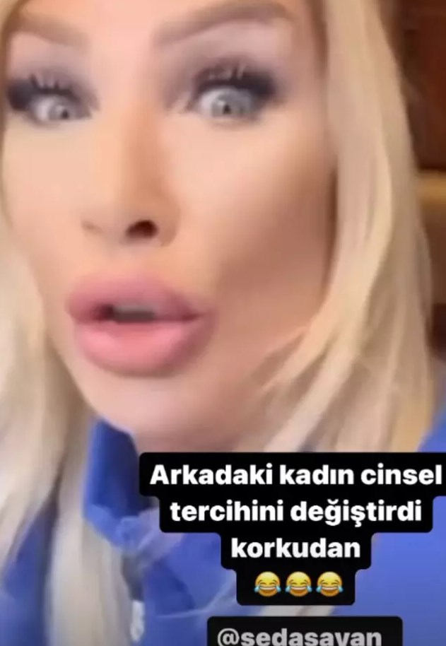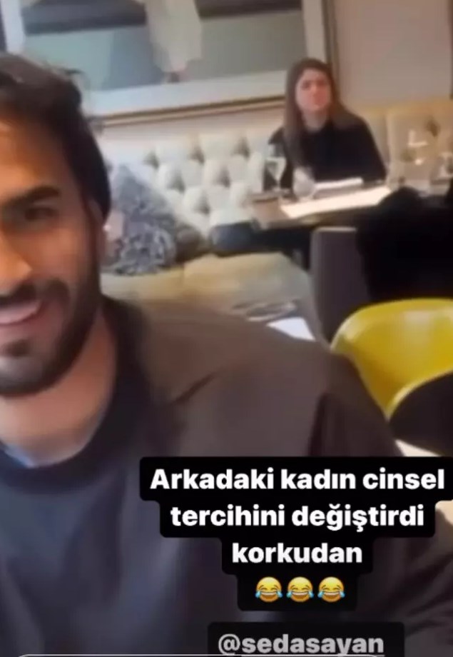 Sayan, paylaşımına ise "Arkadaki kadın cinsel tercihini değiştirdi, korkudan" yazdı.