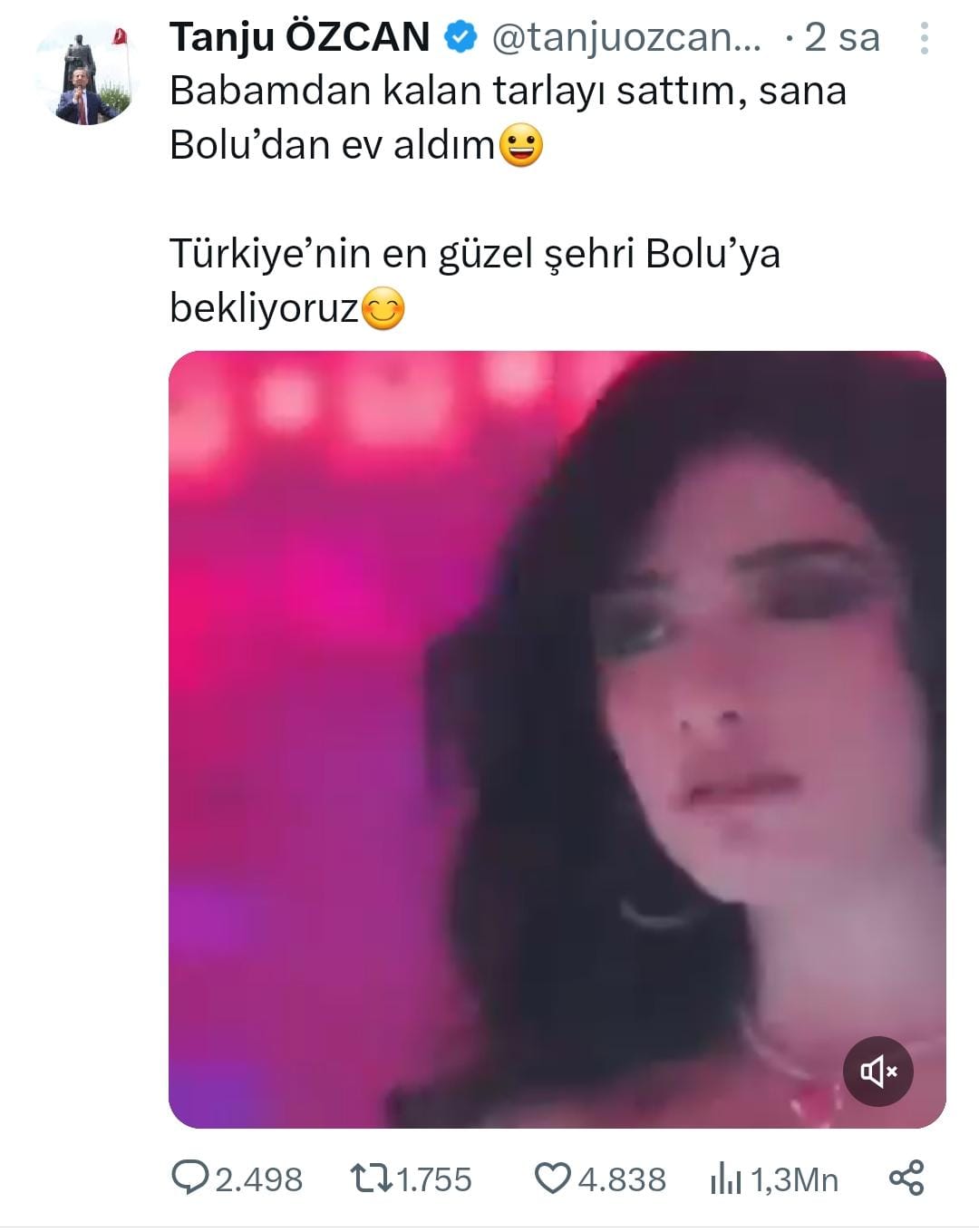 AK Parti’nin Bolu Belediye Başkan Adayı Muhammed Emin Demirkol da “Kadınlarımız, kızlarımız Bolu'da başımızın tacıdır. Meze değil” ifadelerini kullanarak dans eden oyuncunun yer aldığı sahnenin blurlanmış halini paylaştı.