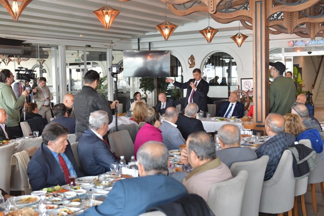CHP Konak Belediye Başkan Adayı Nilüfer Çınarlı Mutlu ve Karabağlar Belediye Başkan Adayı Helil Kınay’ın da katıldığı toplantıda konuşan Dr. Cemil Tugay, “İzmir’imizin çok değerli sivil toplum kuruluşlarının temsilcileri başta Mehmet Aydoğan olmak üzere hepinizi sevgi ve saygıyla selamlıyorum. Bu buluşmayla günümüzü güzel kıldınız. Burada bir arada olmak birliktelik içinde görmek hepimize umut veriyor” dedi.