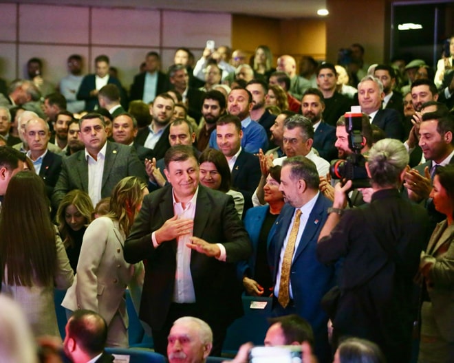İzmir Büyükşehir Belediye Başkan Adayı Dr. Cemil Tugay, kendilerine kariyer yapmak, birilerine hava atmak için bu göreve talip olmadığını vurgulayarak, “Kendimize zenginlik sağlamak, başka grup insanlara zenginlik sağlamak için buralarda değiliz. Bu ülkenin onuru, bu ülkenin gururu için hiç kimsenin aç açıkta olmasına, ayrımcılığa maruz kalmasına razı olmadığımız, sahip çıkma kararlılığımız olduğu için ülkemize, hocalarımıza, gençlerimize, basın mensuplarına, bu mücadelenin tam göbeğinde olan sivil toplum kuruluşlarına, her biriyle ayrı ayrı gurur duyduğum yoldaşlarım ve bize bu ülkeyi emanet eden Gazi Mustafa Kemal Atatürk için yapıyoruz. Bu mücadele, son insanımız kendini iyi hissedene kadar, bu ülkenin onuru çıkabileceği en üst seviyeye çıkana kadar devam edecek” diye konuştu.