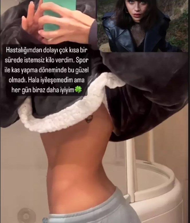Alkan, paylaşımında "Hastalığımdan dolayı çok kısa bir sürede istemsiz kilo verdim. Spor ile kas yapma döneminde bu güzel olmadı. Hâlâ iyileşemedim ama her gün biraz daha iyiyim" ifadelerini kullandı.
