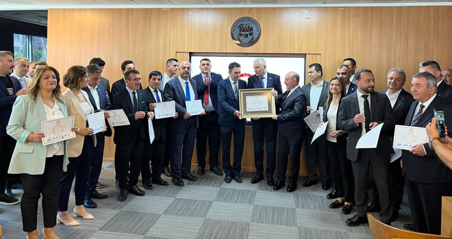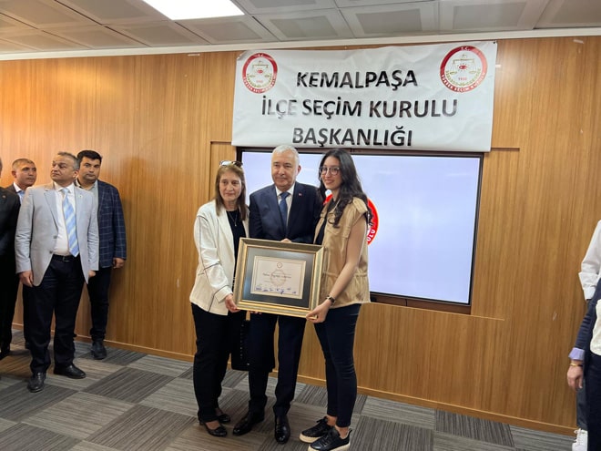 Kemalpaşa Kültür Merkezi'nde gerçekleştirilen törende Türkmen'e mazbatasını Hakim Gökhan Güzeltaş tarafından mazbatasını aldı.