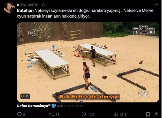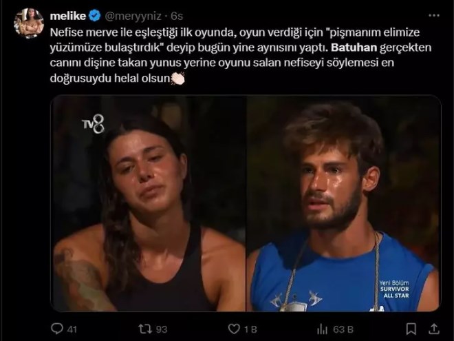 Nefise'nin Merve ile yarışırken 'oyunu sattığı' iddiası sosyal medyada konuşulurken Batuhan'ın kararı ise izleyiciden destek gördü.