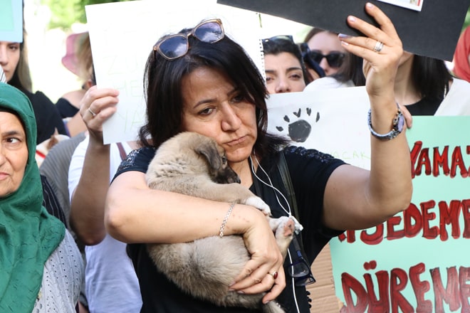 Şanlıurfa’da bir araya gelen hayvan hakları savunucuları; 'Toplamaya, esarete, sürgüne, öldürmeye hayır' sloganı ile eylem yaptı. Son günlerde başıboş köpeklerin saldırısı sonucu yaralanan 4 kişinin hastaneye kaldırıldığı kentte, toplanan hayvanseverler adına konuşan Hayvanları Koruma ve Yaşatma Derneği Başkanı Hümeyra Ulubay, sahipsiz köpeklere yapılan şiddete tepki gösterdi.