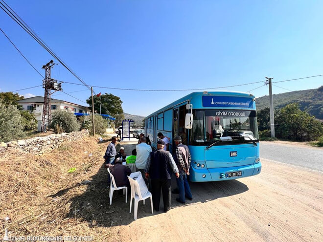 İzmir Büyükşehir Belediye Başkanı Tunç Soyer’in sosyal belediyecilik vizyonu doğrultusunda çalışmalarını sürdüren Sosyal Hizmetler Dairesi Başkanlığı kış mevsimi öncesi dar gelirli ailelere destek olmak için harekete geçti. Bir yandan yakacak ve battaniye dağıtımını sürerken metropol dışındaki ilçelerde ve köylerde yaşayan yurttaşların giysi ihtiyacını karşılamak için oluşturulan otobüs de hizmete girdi.