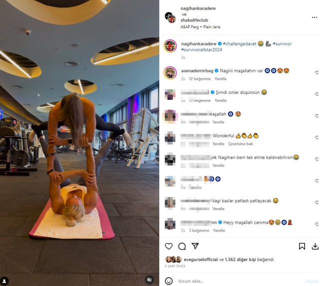 Nagihan Karadere'nin güç gösterisine sessiz kalamayan eski yarışmacı Asena Demirbağ "Maşallahın var" derken takipçileri de "Gümbür gümbür geliyorsun" ve "Bu çalışmalara hak ettiğin şampiyonluk senin olsun" yorumu yaptı.