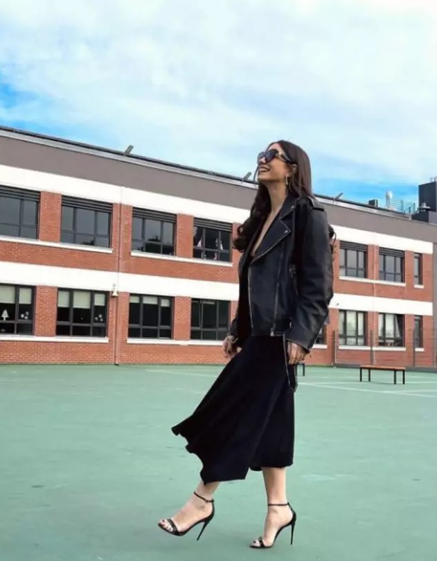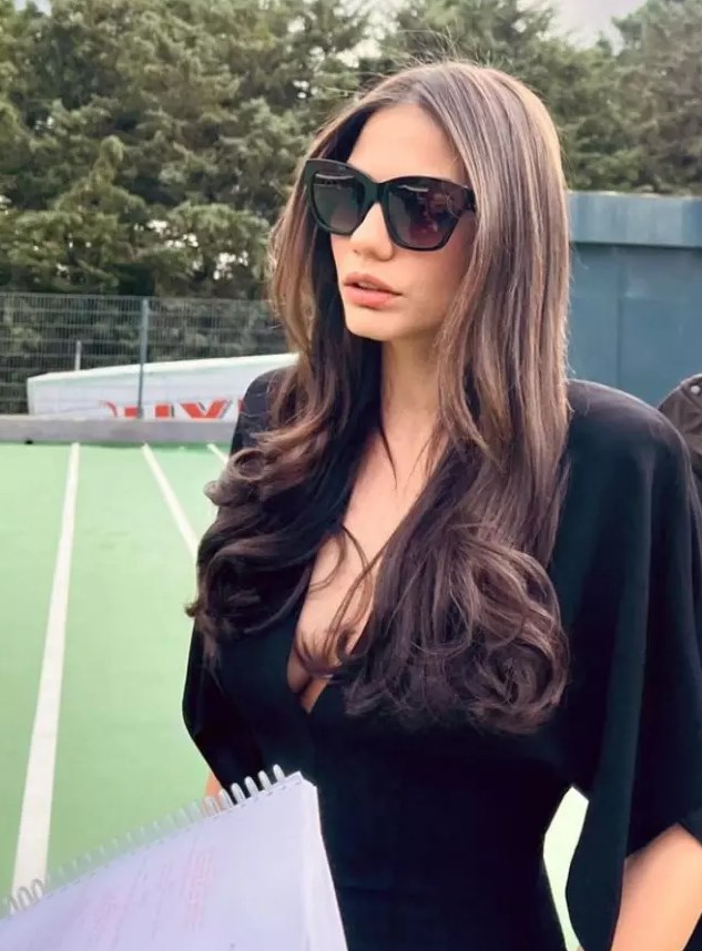 Siyah derin göğüs dekolteli elbisesiyle pozlar veren ünlü ismin setten pozlarına beğeni ve yorum yağdı.