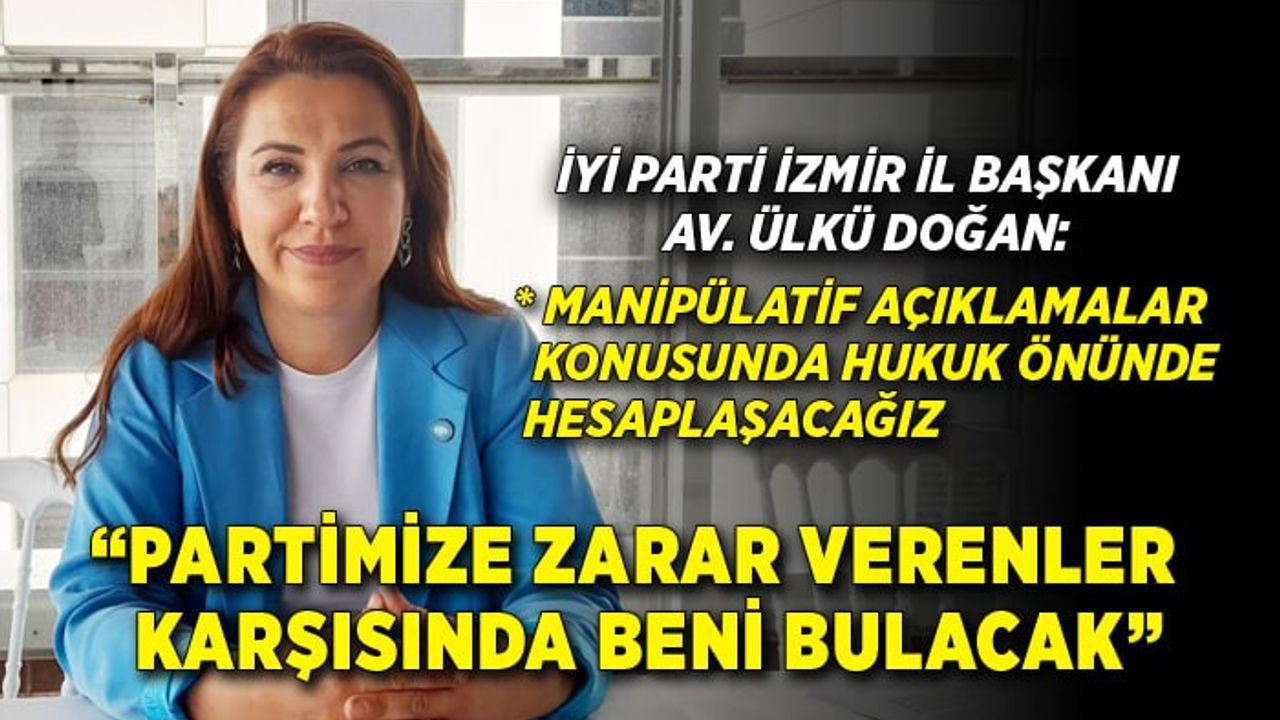 İYİ Parti İzmir İl Başkanı Ülkü Doğan, “Siyasi parti kademelerinde görev alan ve siyaseti takip eden herkesin bileceği üzere her gün istifalar yaşanacağı gibi yeni üye kayıtları da olmaktadır. Keza bazı ilçelerimizde yüzlerce kişinin istifa ettiği ileri sürülmüş hatta pek çok ilçemizin istifa ettiği haberleri yayılmaya çalışılmıştır. Kongre sonuçları nedeni ile istifa ettiğini açıklayan sadece 2 ilçemiz vardır. Bunun dışında hiçbir ilçe başkanımız görevini bu nedenle bırakmamıştır. Yeni seçilen Genel Başkanımızın ve yeni oluşabilecek teşkilatların önünün açılması için verilen istifaları dahi kongreye bağlamaya çalışarak kendi kötü niyetlerine malzememe yaratmaya çalışanları kınıyorum. Kamuoyunun günlerdir İYİ Parti üye sayısı üzerinden manipüle edilmesini, bir takım gerçek olmayan istifa sayıları ile dezenformasyon yaratılmasını ve partimizin üye sayıları üzerinden tartışma yaratılmasını doğru bulmuyorum ancak bu sayıları veren de üzerinde tepinen de biz değiliz.” dedi.