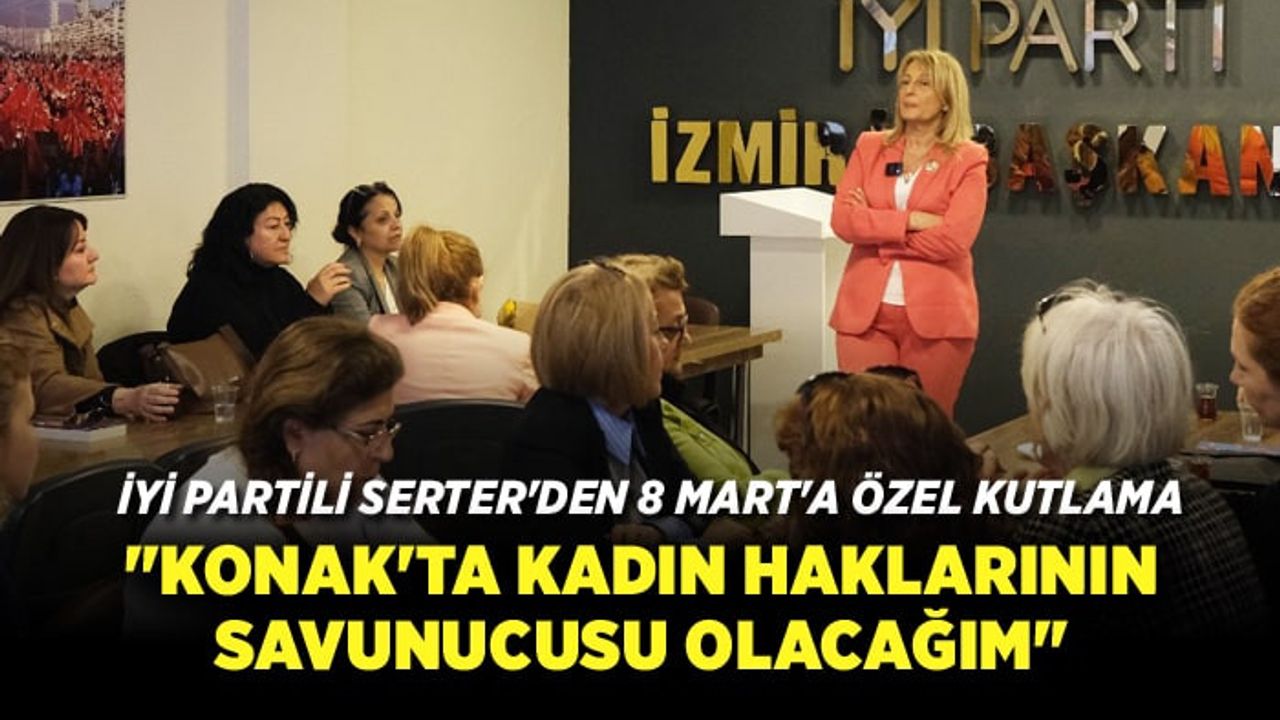 İYİ Parti Konak Belediye Başkan adayı HUriyet Serter ise 8 Mart Dünya Emekçi Kadınlar Günü'nün emekçi kadınların haklarını elde etmek uğruna can verdikleri bir mücadeleyi simgelediğini söyledi. Kadınların her alanda yükselmesini önemsediklerini dile getiren Serter, "Atamız 1934 yılında Türk kadınlarına seçme ve seçilme hakkını verdiğinde dünyada 2. Sıradayken bundan 93 yıl sonra baktığımızda bugüne kadar 35 bin erkek belediye başkanının yanı sıra sadece 150 kadın belediye başkanının olması ülkemizin bugün geldiği noktada çok düşündürücüdür. Biz Türk kadınları aslında pek çok ülkeden önce haklarımızı elde ettik. Ve bunu Ulu Önder Mustafa Kemal Atatürk'e borçluyuz. Daha gidecek pek çok yolumuz olsa da kazanımlarımıza sıkı sıkıya bağlıyız ve eşitlik yolunda mücadele etmeye devam edeceğiz. Konakta her zaman haklarımızın savunucusu olacağım" diye konuştu.
