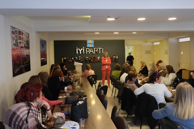 Toplantıda konuşmacı olarak Öğretmen Yazar İpek Deniz de yer alırken, hayat yolculuğunu, bir öğretmen, bir idareci, bir yazar ve aynı zamanda anne ve eş olarak verdiği mücadeleyi anlattı. İpekçe isimli kitabını da katılımcılara armağan eden Deniz, kitabın içinde yaşadıklarının, öğrendiklerinin ve deneyimlerinin bulunduğunu belirterek, "İpekçe'nin eğitim ve yaşamla ilgili arayışta olanlara ilham vereceğine inanıyorum" dedi. İyi Parti Kadın Politikaları Başkanı Filiz Çuhadaroğlu da yaptığı konuşmada, ülkemizde kadının güçlenmesi, her alanda eşit hak ve koşullara sahip olabilmesinin ancak daha fazla karar mekanizmalarında yer alması ile mümkün olacağını söyledi.