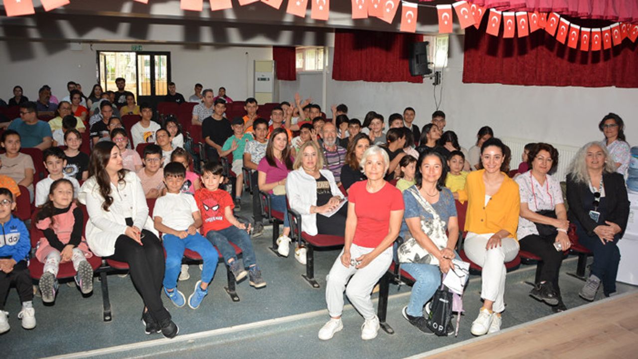 Okulun konferans salonunda öğrencilerle bir araya gelerek ağız ve diş sağlığı konusunda bilgi veren İZDO Yönetim Kurulu Üyesi Melis Daraoğlu Gürel'e okul öğretmenleri, işaret diliyle iletişim için destek verdi.