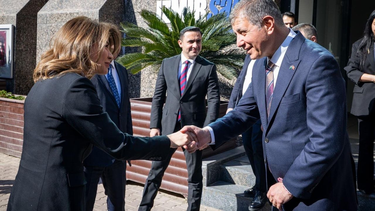 İzmir Büyükşehir Belediye Başkanı Dr. Cemil Tugay, Azerbaycan’ın İstanbul Başkonsolosu Narmina Mustafayeva ile konsolos Zaur Allahverdi-zada ve konsolos Sevinc Süleymanova’yı ağırladı. Ziyarette İzmir Büyükşehir Belediyesi Genel Sekreter Yardımcısı Övünç Özgen ile İzmir Büyükşehir Belediyesi bürokratları da yer aldı. İzmir ile Bakü’nün kardeş kent oluşunun 40. yılı için yapılması planlanan kutlamalar ve karşılıklı iş birlikleri görüşme kapsamında ele alındı.