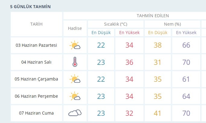 İşte İzmir'in 5 günlük hava durumu raporu;