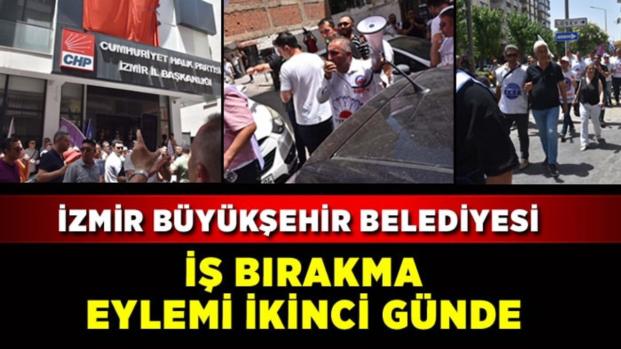 Memurların iş bırakma eylemi bugün de devam etti. Saat 10.00 sıralarında Kültürpark'ta Büyükşehir Belediyesi Meclis Salonu'nun bulunduğu binanın önünde toplanan memurlar ardından İzmir Büyükşehir Belediye Başkanı Cemil Tugay'ın ofisinin bulunduğu İzmir Sanat'ın önüne geldi. Sendika üyelerinin bulunduğu eyleme ilçe belediyelerinde çalışan memurlar da destek verdi. Sendika temsilcileri konuşmalar yapıp, "Hakkımızı, emeğimizin karşılığını istiyoruz" diyerek tepkilerini dile getirdi. Daha sonra Kültürpark'tan çıkıp, CHP İzmir İl Başkanlığı binasının önüne yürüyen memurların eylemi sürüyor.