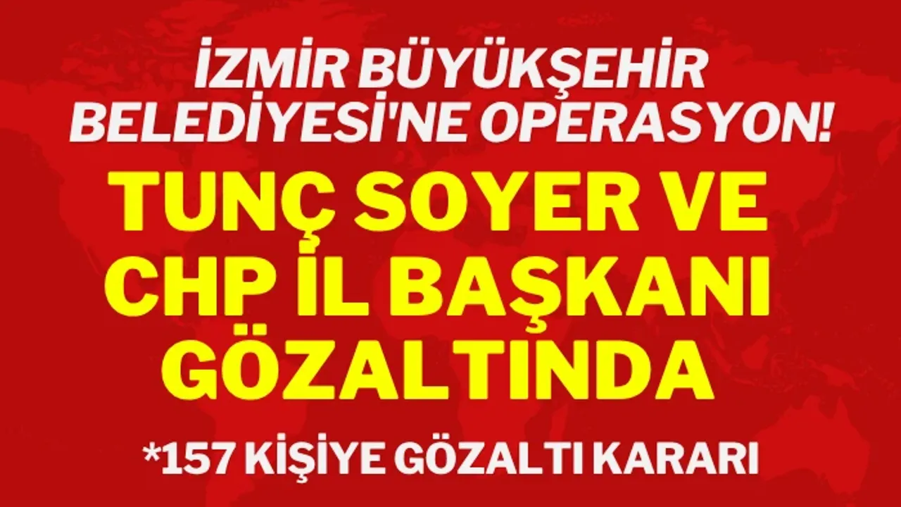 İzmir Cumhuriyet Başsavcılığı Terör Suçları Soruşturma Bürosu ve Organize Suçlar Bürosu tarafından yürütülen soruşturma kapsamında, İZBETON şirketi ve kooperatiflere yönelik sabah saatlerinde operasyon düzenlendi. Mali Suçlarla Mücadele Şube Müdürlüğü ekipleri, haklarında gözaltı kararı verilen 157 kişiden çoğunu gözaltına aldı. Gözaltına alınan şüpheliler arasında eski İzmir Büyükşehir Belediye Başkanı Tunç Soyer, CHP İzmir İl Başkanı Şenol Aslanoğlu, eski İZBETON Genel Müdürü Heval Savaş Kaya, İZSU Genel Müdürü Gürkan Erdoğan, Genel Sekreter Yardımcısı Övünç Özgen, eski Genel Sekreter Barış Karcı, Manisa Büyükşehir Belediyesi Genel Sekreter Yardımcısı Ulaş Aydın, Buca Belediye Başkan Yardımcısı Engin Güzel, eski İzmir Büyükşehir Belediyesi Genel Sekreter Yardımcısı Özgür Ozan, İzmir Ticaret Odası Meclis Üyesi Çağlar Kalkan, İzmir Büyükşehir Belediyesi Eşrefpaşa Hastanesi Başhekim Yardımcısı Gaffar Karadoğan, Bayraklı Belediye Başkan Yardımcısı Mehmet Hanifi Mert Yılmaz, CHP Bornova İlçe Başkan Yardımcısı Haydar İzgin, İzmir Büyükşehir Belediyesi Genel Sekreter Yardımcısı Övünç Özgen ve CHP Ankara İl Başkanı Ümit Erkol'un oğlu Fırat Erkol’un olduğu öğrenildi. Gözaltına alınan şüpheliler, sağlık kontrolünün ardından emniyete götürüldü.